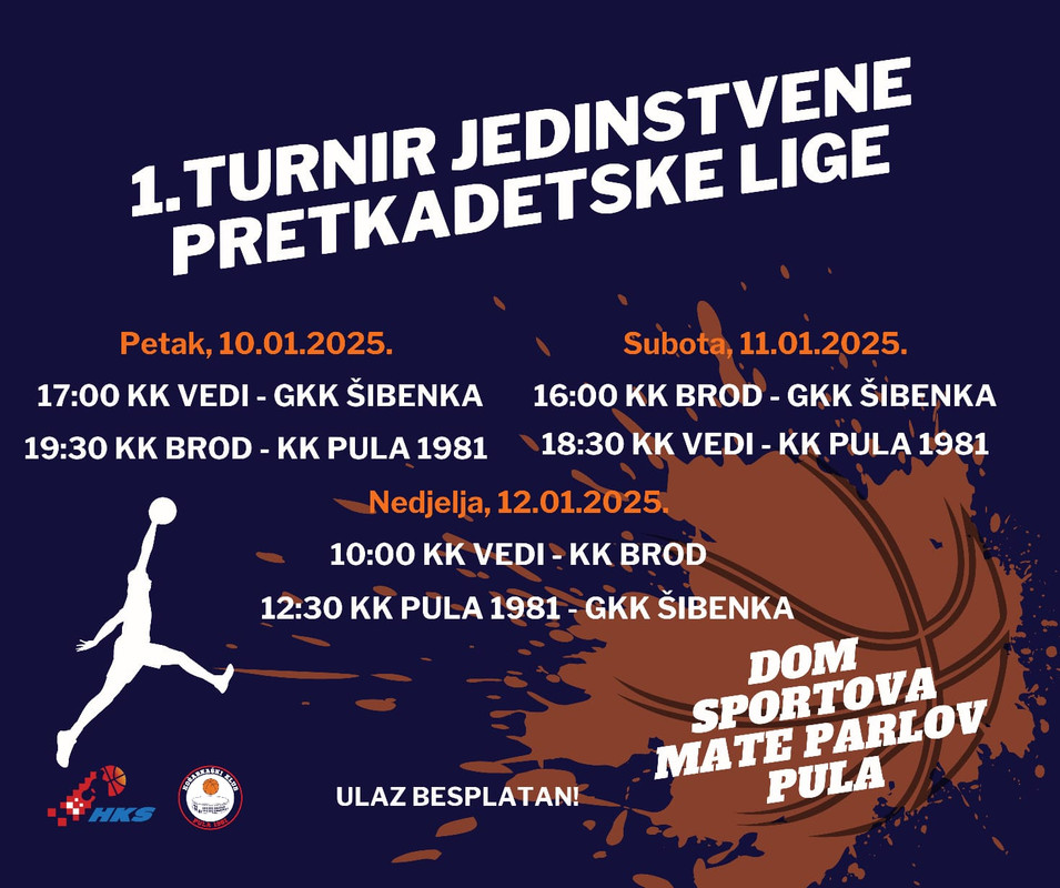 Nedjeljnim je utakmicama zaključen prvi turnir Jedinstvene pretkadetske lige 2024/25, a košarkaši Pule 1981 nakon uvodne pobjede protiv Broda tijekom vikenda nisu uspjeli upisati nova dva boda, već su poraženi u subotu od Vedija i danas od Šibenke.